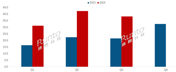 根据洛图科技(RUNTO)最新发布的《中国电子纸平板零售市场月度追踪(China ePaper Tablet Retail Market Monthly Tracker)》报告,2024年第三季度,中国电子纸平板线上全渠道(含抖音快手等内容电商)的零售量为38.2万台,同比增长77.0%,环比下降9.7%;销额为11.5亿元,同比增长98.3%。