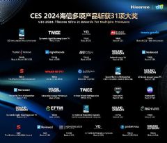 海信凭借卓越的产品创新和性能表现,共斩获31个奖项,创历届展会的获奖纪录之最!其中海信110UX电视、激光车载全场景显示和智能嵌入式洗碗机荣获“CES创新奖”…详情>>